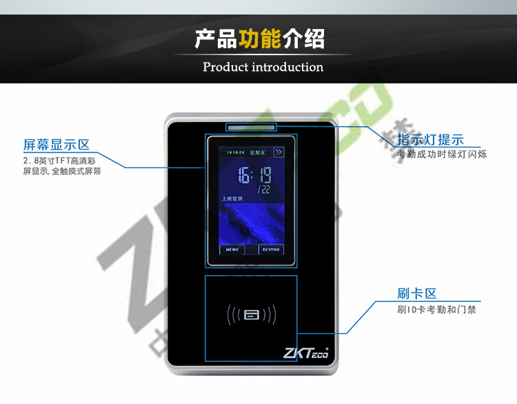 門禁功能,電鎖、出門開關、報警、門磁、多種驗證方式。